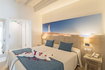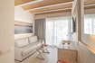 All the Junior Suite rooms are equipped with bedroom (2 beds) and living room, bathroom with shower, satellite TV, hairdryer, mini- fridge, air conditioning, safe (free of charge)and terrace. Rooms are located on the ground floor