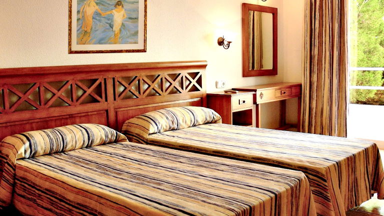 Habitación doble, equipada con 2 camas individuales, Aire acondicionado, baño, balcón o terraza, televisión, caja fuerte y WIFI.