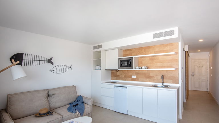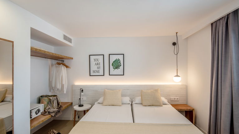 Reservar un Apartamento Top Secret significa alojarte en un establecimiento situado en el centro de Es Pujols, a una distancia máxima de 400 metros de la playa, con todo lo necesario para disfrutar de unos merecidos días de descanso. Asimismo, eligiendo esta opción de Apartamentos Top Secret Es Pujols podrá ahorrar hasta un 40% respecto al precio oficial del mismo apartamento. La opcion apartamento con un dormitorio y salón con sofá-cama para un máximo de 4 huéspedes consta de cocina totalmente equipada, baño con ducha/bañera, Tv, balcón o terraza, aire acondicionado y caja fuerte. Se realiza un cambio de toallas cada dos días y el cambio de sábanas y limpieza se realiza una vez por semana.