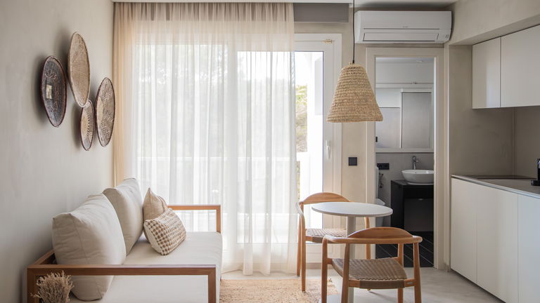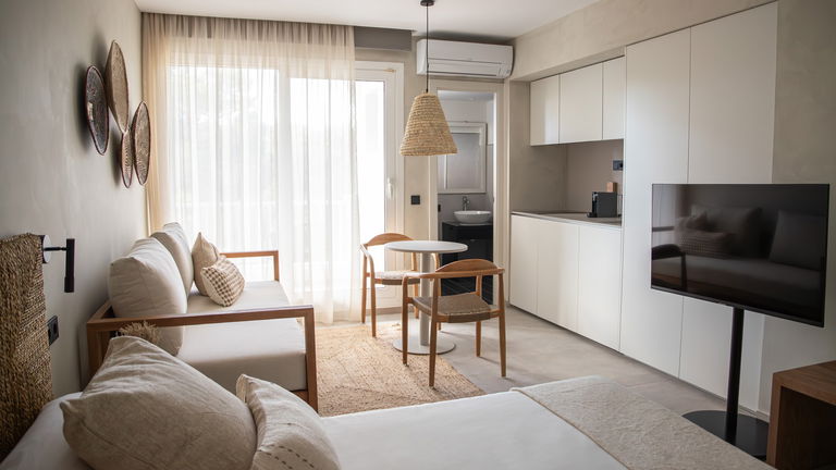 I monolocali sono dotati di arredi di alta qualità, cucina completamente attrezzata con frigorifero, macchina da caffè nespresso, microonde, bagno con doccia e servizi, balcone, aria condizionata, Smart TV, cassaforte gratuita. Possono avere letto matrimoniale e divano letto o due letti singoli e un divano letto.